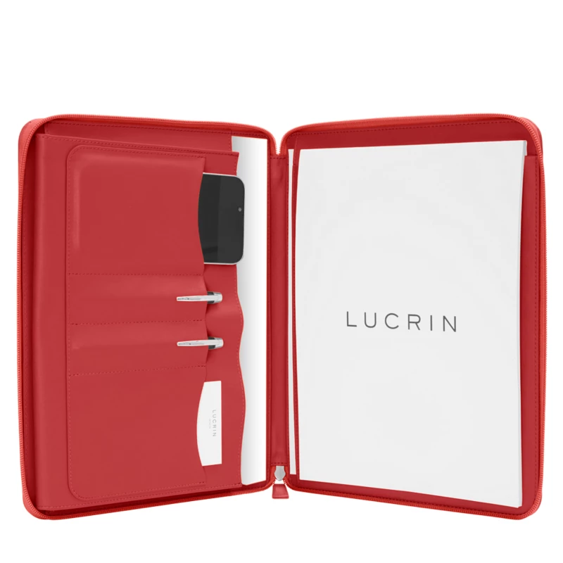 Organise your work in style with this leather organiser portfolio. Perfect for your outdoor meetings, this elegant portfolio organizer comes with designated compartments for your documents, tablet, pen and business cards. The slim design makes it the perfect companion for your overseas meetings, seminar and so on. Simply slip it into your bag or carry it in your hands to add some style to your look. Impress your clients and colleagues with this unqiue leather organiser portfolio. This organiser portfolio fits your iPad Pro 12.9”, Microsoft Surface 8 / X and other tablets up to 12.9”. Get a unique organizer portfolio by customising the leather colour and type from LUCRIN Geneva’s palette. Add an elegant engraving of your name or logo to stand out from the crowd.
