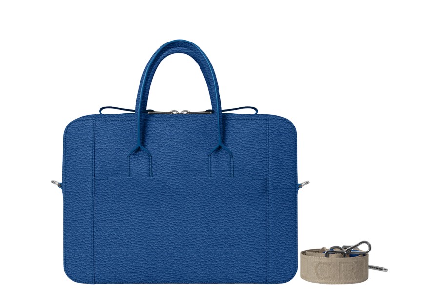 Briefcase (13 inch) - Royal Blue-White - Granulated Leather