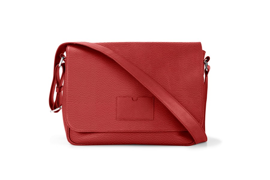 Great to carry everyday, this messenger bag comes with a large magnetised flap closure, rounded shape and soft conception. Two magnets help the flap of the mailbag snap shut and this is very practical when you are on the move. The cotton lining plus the zipped flat pocket inside the sling bag ensure that you can keep in your daily essentials, such as your phone, wallet and keys. The relatively large volume of this shoulder bag allows you to slip in your doc holder, notepad, copybook or a laptop of up to 17 inch. You can customise this leather crossbody bag with your initials for instance.