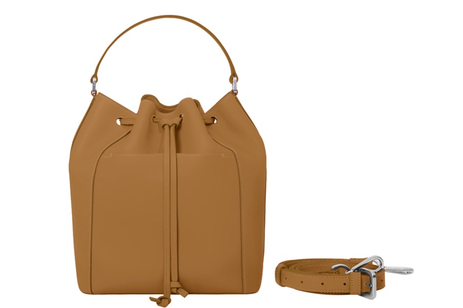 Lucrin has revisited the traditional leather bucket bag and presents a sublime fashion piece that exudes elegance and refinement. Thanks to its design and features that include an exterior pocket and hand sewn finish, it is an absolute pleasure to carry day in day out. Its interior pockets can contain your smartphone, wallet or makeup essentials. This leather ladies bag can be customised in our bright palette of colours and you may even go for the engraving of your name or initials.