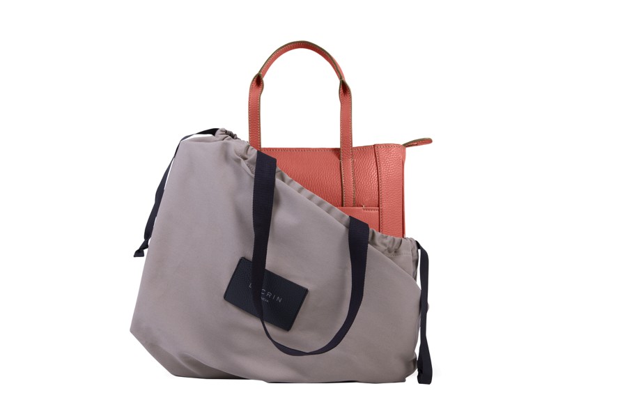 Small unisex tote bag - Coral - Granulated Leather