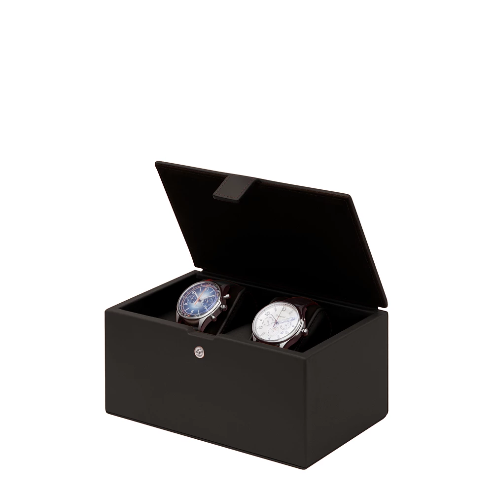 Watch box for 2 watches Dark Brown  - Smooth Leather