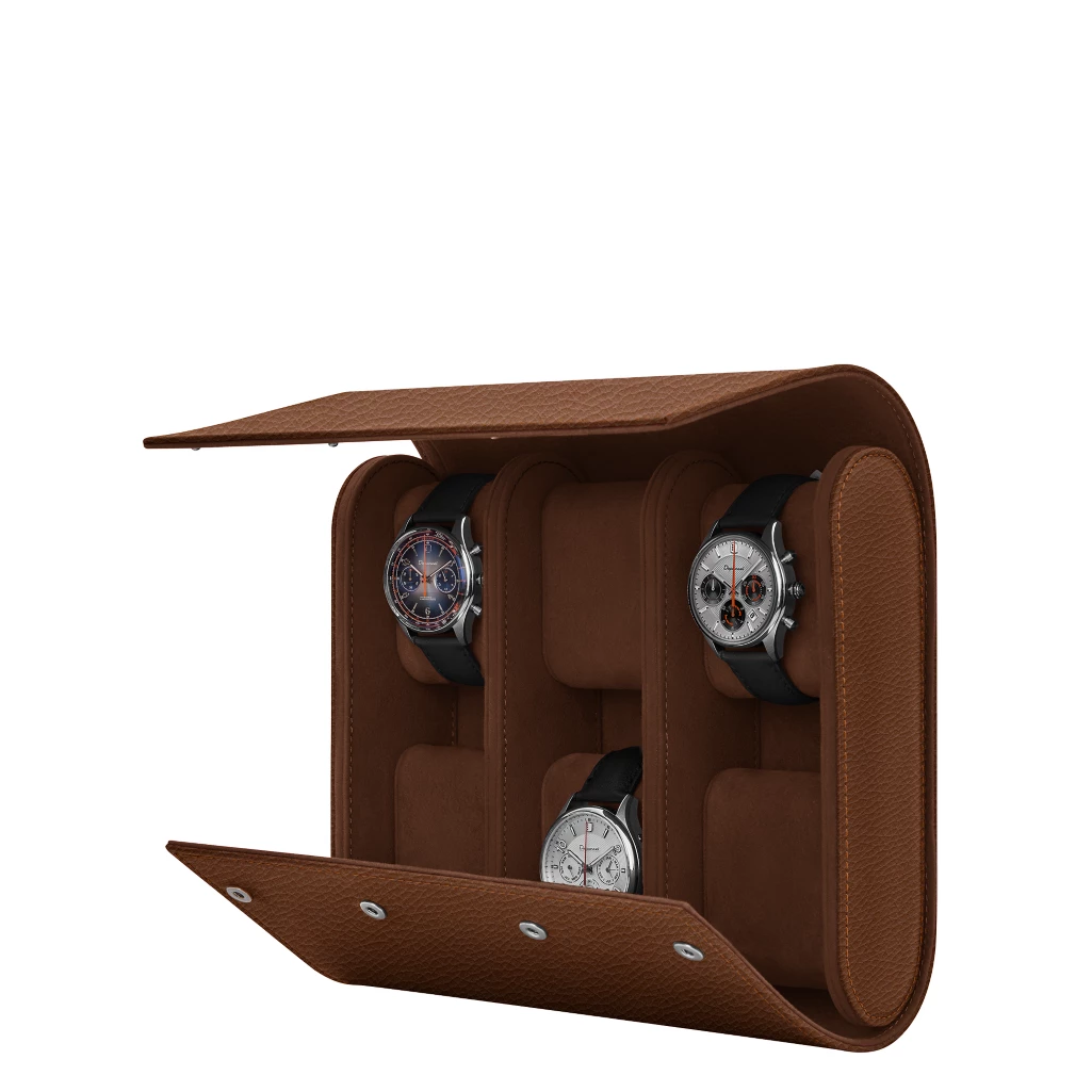 Are you a watch connoisseur with an incredible collection of luxury watches? LUCRIN Geneva’s new leather watch roll is the perfect accessory for storing, securing and travelling with your timepieces. Handcrafted in premium leather and lined with soft microfibre, you may organise up to 6 luxury watches in our elegant watch roll case to protect them from being scratched or broken. Our watch roll for 6 pieces is customisable in different colours and contrasting stitchings. Monogram your name for more style!