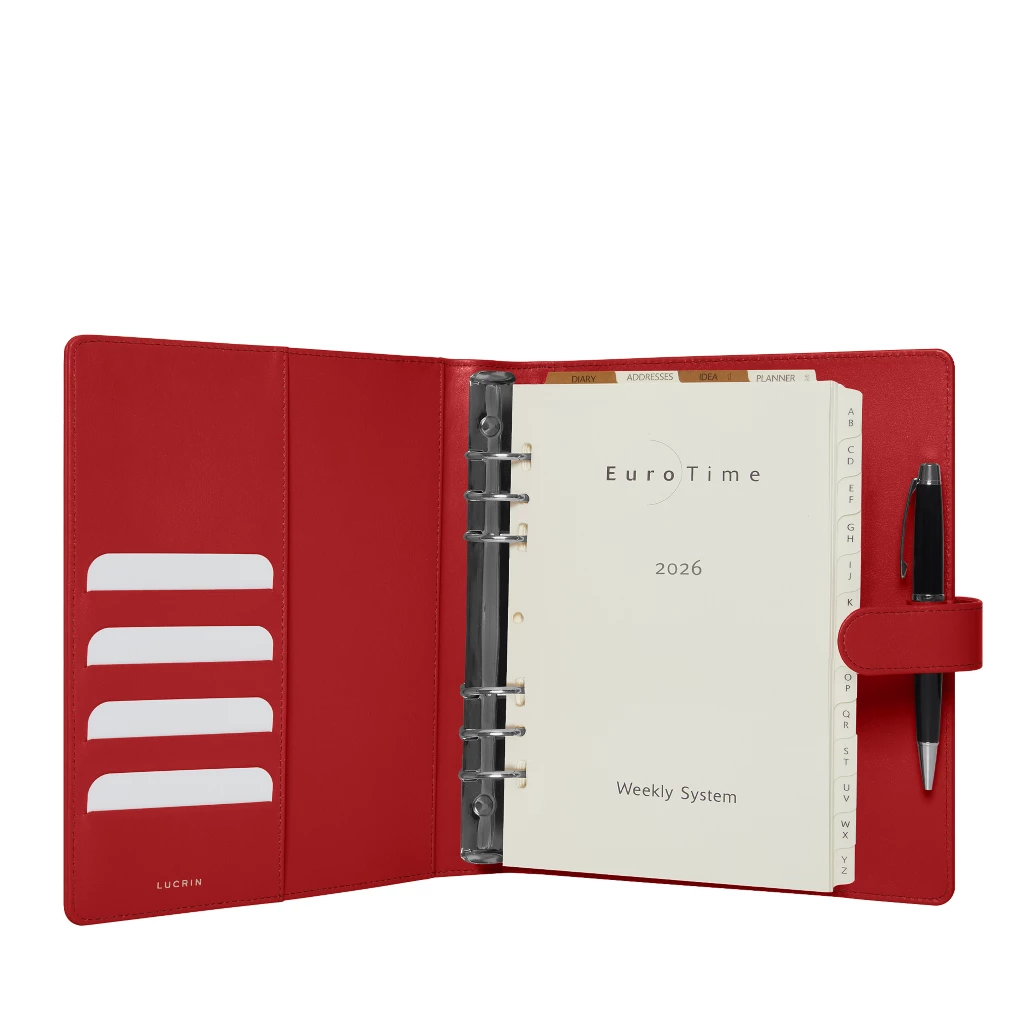 Large leather organiser 2026. This is both elegant and indispensable.The interior consisting of 4 pockets for credit cards and weekly sheets in 6 languages. The organizer comes including 1 calendar week on 2 pages, telephone directory, a memo and a block note.The agenda runs from January to December. The organiser's refill is available on our website under the reference ROS1064.