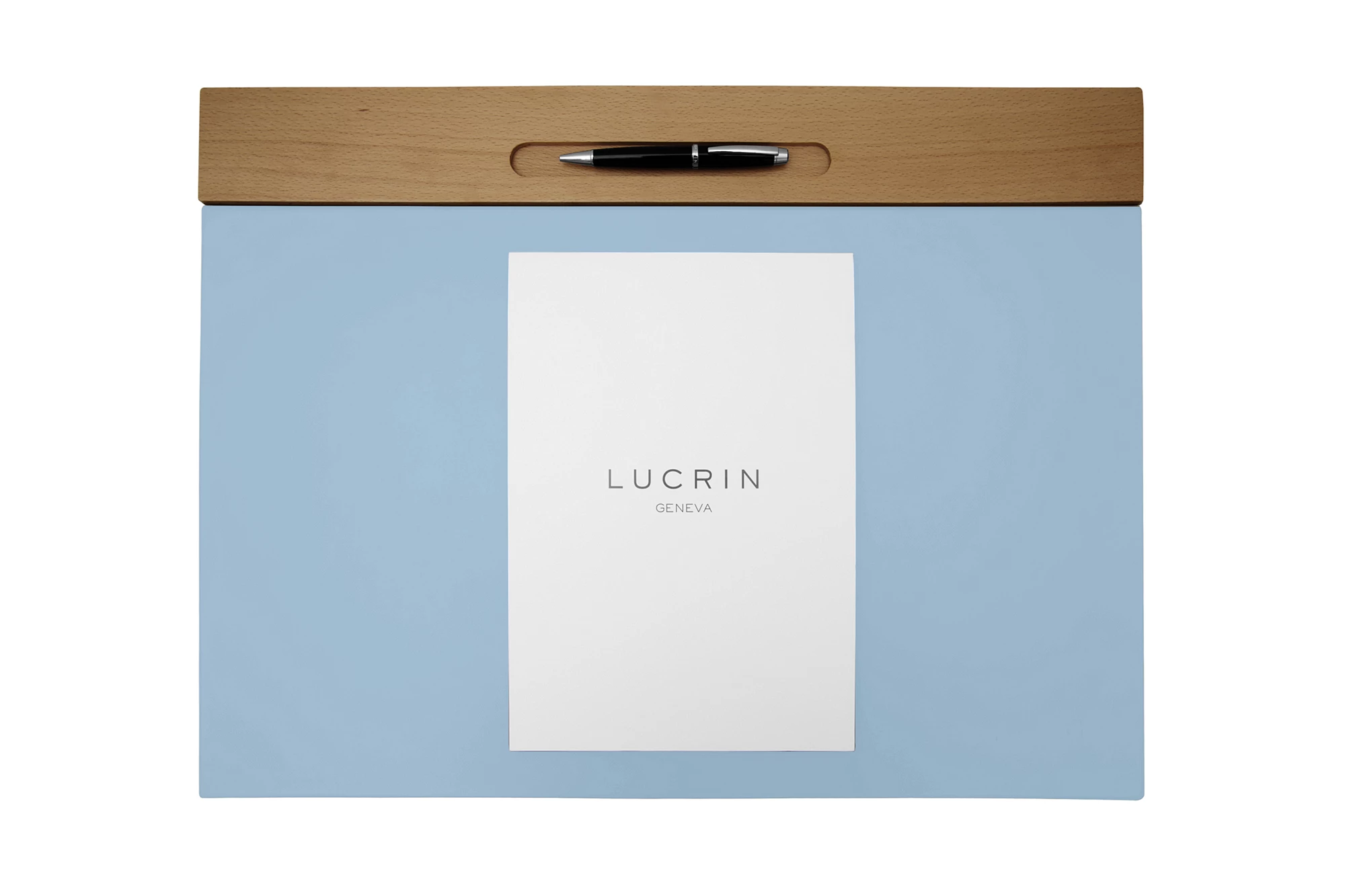 Desk Pad - Leather & Oak Wood - Pastel Arctic - Smooth Leather