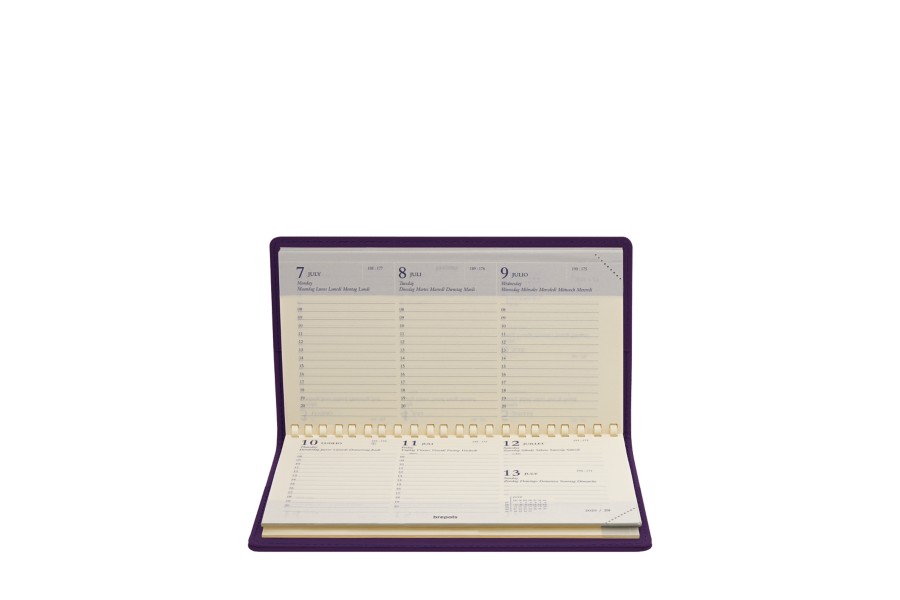 Pocket 2019 diary/organizer in full grain leather. Delivered with an Omniplan Brepols spiral-bound, week-on-two pages planning diary for the year, a phone index, a planning and world maps. Diaries start from January 1st, to December 31st