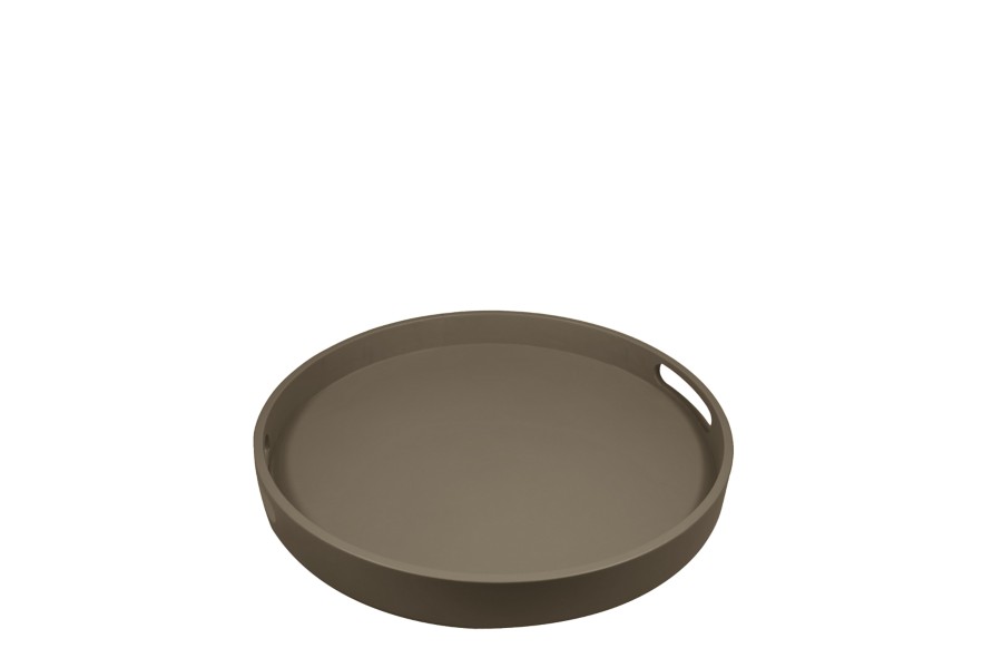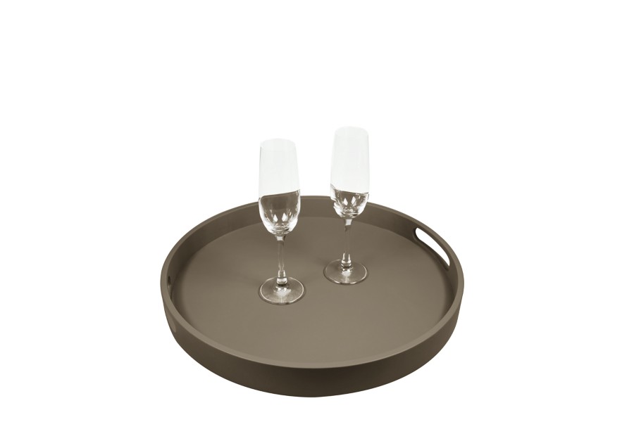 Round service tray - Dark Taupe - Smooth Leather