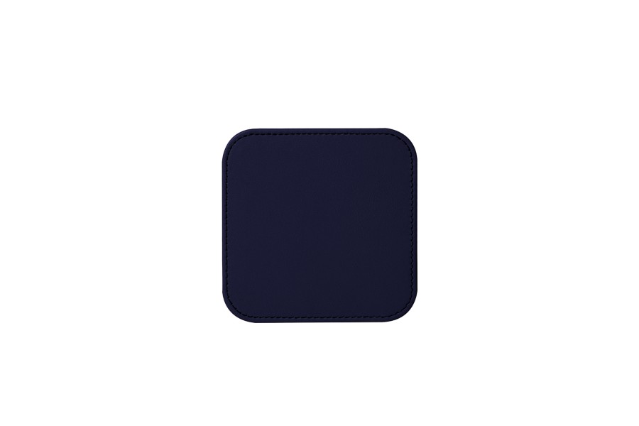 Set of 6 square coasters - Navy Blue - Smooth Leather