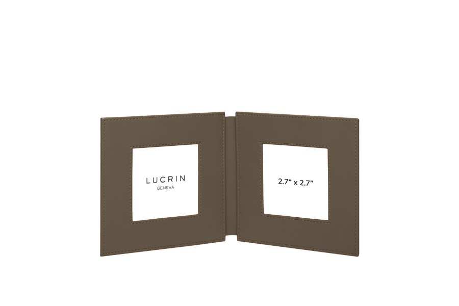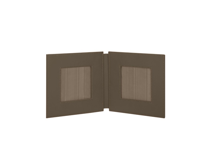 Double Picture Small Frame - Dark Taupe - Smooth Leather
