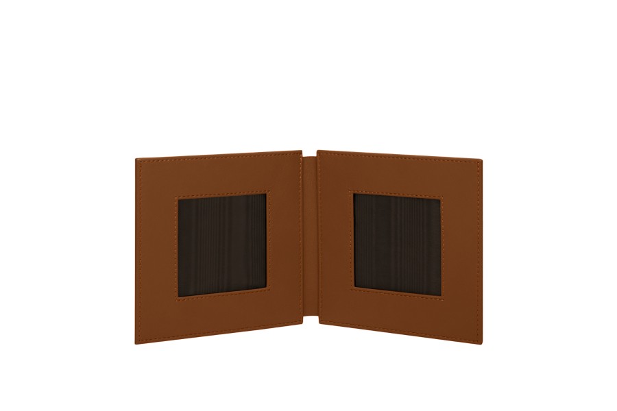 Crafted from high-quality leather, this double picture frame is the ideal accessory to highlight your favourite photos. It will have no trouble finding a place on your end table, desk, or sideboard. Easy to pack up and transport, the frame can also accompany you on business trips. Slide a photo of your loved ones into each side and keep them with you no matter where you're working. Both photos are protected by a flexible transparent plastic pane.