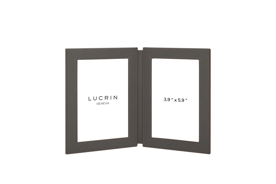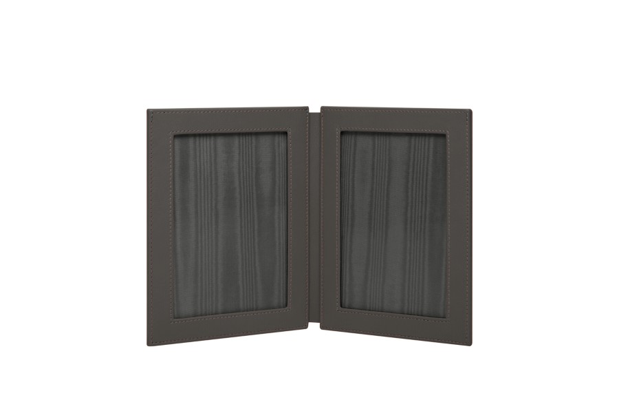 Double picture frame (14.5 x 19 cm) - Mouse-Grey - Granulated Leather
