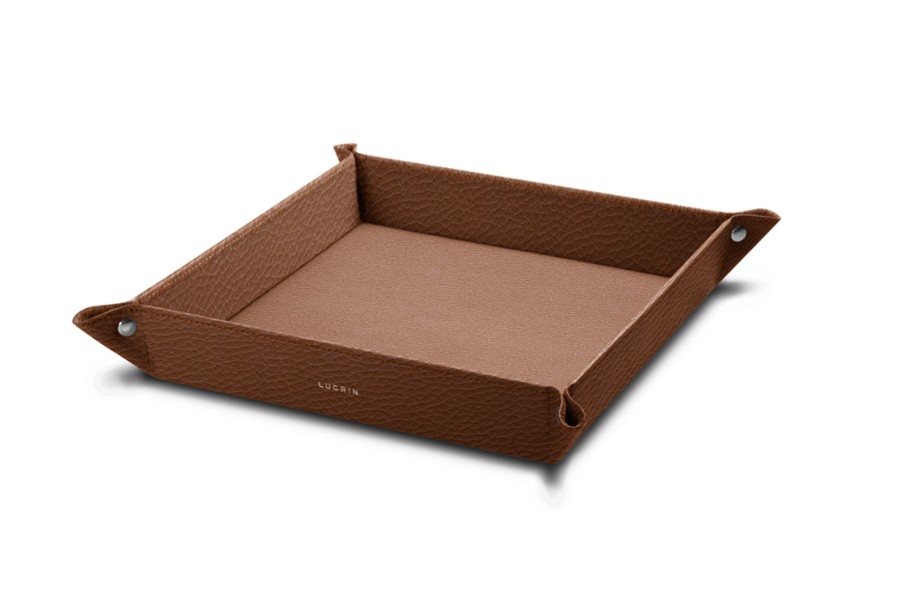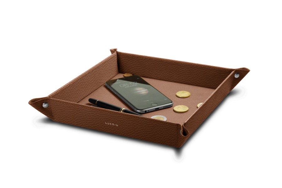 Large square catchall (21 x 21 x 4 cm) - Tan - Granulated Leather