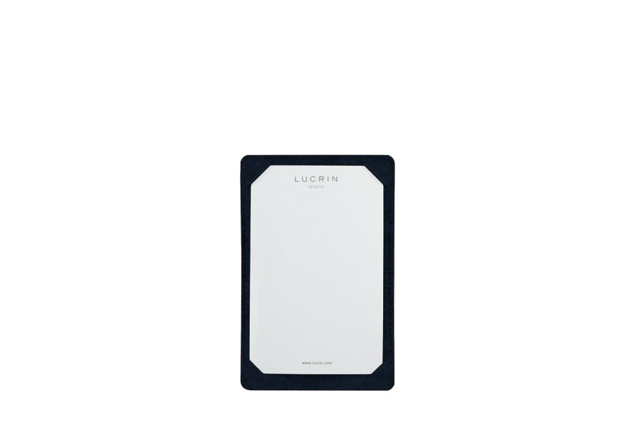 This pocket writing pad of relatively large format is ideal for meetings or press conferences. It is conceived in premium authentic leather, and the sheets are kept well in place thanks to four slits in each corner. At the back of this simple yet elegant pocket note pad, there is a large flat pocket which can store a refill of the paper notes.
