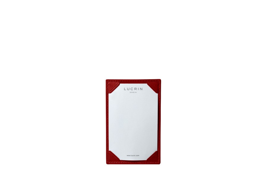 This writing pad, which is really not bulky in terms of size, is ideal to jot down notes, thoughts or phone numbers. On one side, you have the basic writing pad, where the sheets are held by 4 notched corners. On the other side, you have a slit in which you can slip in some paper refills or any card with standard credit card dimensions. Of course, all our writing pads are delivered with white LUCRIN sheets coming in some paper blocks refills.